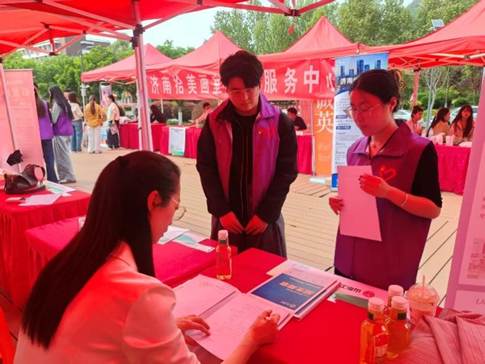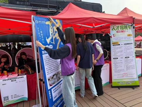活动当天,众多优质企业齐聚校园,面向应届毕业生开展人才招聘,现场求职学生络绎不绝,各项筹备与保障工作任务繁重。参与活动的学生党员主动请缨、冲锋在前,提前抵达招聘会现场,分工协作开展各项志愿服务:细心摆放桌椅、整理企业宣传资料、规整招聘展位、打扫现场卫生,全力做好前期筹备;招聘会开展过程中,党员们坚守岗位,主动为企业工作人员指引展位、搬运物资,为求职学生提供路线引导、就业疑问解答、现场秩序维护等贴心服务,及时清理现场垃圾、整理散落物资,全程以耐心细致的态度、热情周到的服务,保障整场招聘会有条不紊、高效顺畅进行。