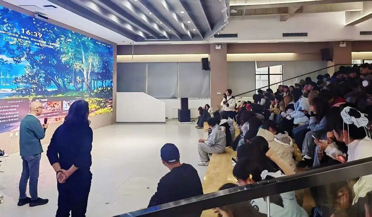 在提问互动环节,同学们围绕“如何以传统文化筑牢民族自信”“怎样结合历史发展维度传承创新传统文化”等议题踊跃发问,现场气氛热烈。吴洪教授结合设计案例,从学术研究与实践应用层面逐一解答,强调传统文化的传承需扎根历史土壤,更要以当代视角解构与重构,让传统元素在现代设计中焕发新生。